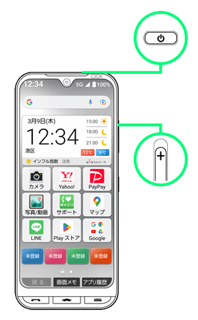 • ↓power(電源ボタン)とicn_button_up(音量大ボタン)を同時に11秒以上長押し