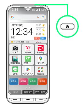 本機を操作しても画面が変わらない、アプリが開かないといった、正常に動作していない場合は、本機を強制的に再起動してください。