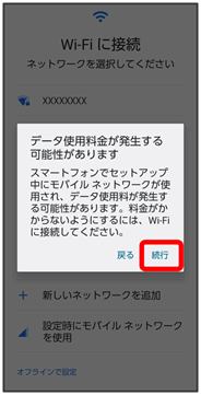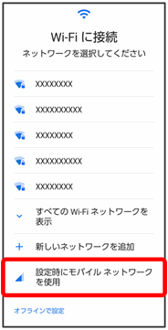 Wi-Fi接続する場合は、接続するWi-Fiネットワークを選択して画面の指示に従って操作してください。Wi-Fi接続について詳しくは、「