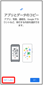 をタップすると、ほかの端末からデータをコピーできます。画面の指示に従って操作してください。