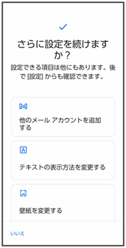 はじめて本機の電源を入れたときは、初期設定画面が表示され、Wi-FiやGoogle アカウントなどの設定を行うことができます。画面の指示に従って、各項目を設定してください。