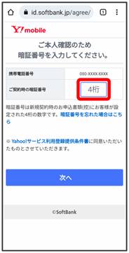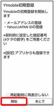 以降、画面の指示に従ってY!mobileサービスの初期登録操作を行う