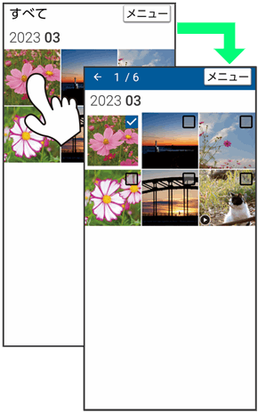 画面に軽く触れたまま、しばらくそのままにしておきます。画面が切り替われば指を離します。