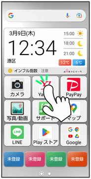 画面に軽く触れて、すぐに指を離します。