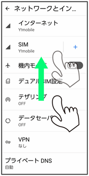 画面に軽く触れて、上下左右に指を軽くはじきます。