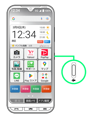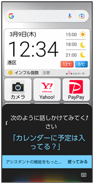 (音声検索ボタン)を押すと、Google アシスタントが起動し音声で情報を検索したり、機能を利用できます。