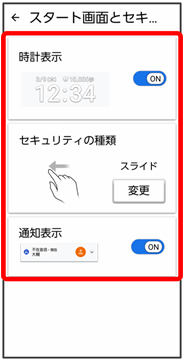 スタート画面に関する設定が行えます。設定項目は次のとおりです。