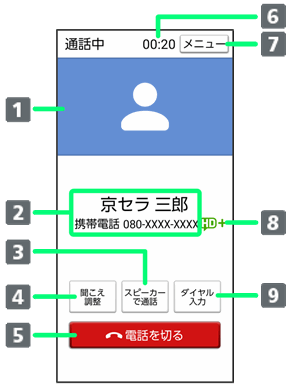 通話中は、アイコンをタップすることにより、次の機能が利用できます。