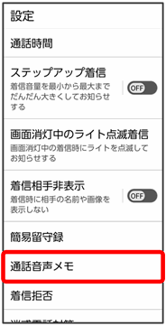 通話開始と同時に通話音声メモの録音を開始するにはあらかじめ設定が必要です。