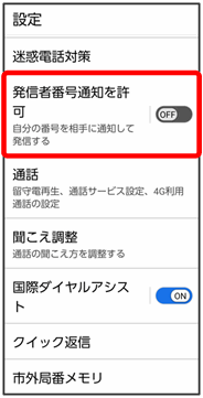 | 発信者番号通知 | お客様の電話番号を相手に通知したり、通知しないようにしたりできます。 | |