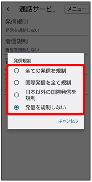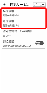 | 発信規制・着信規制 | 電話発着信を状況に合わせて制限できます。 |