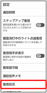 | 着信拒否 | 電話着信の拒否を設定します。 | |