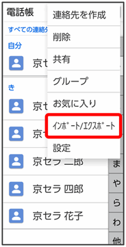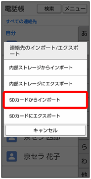 SDカードに保存(バックアップ)した電話帳データを読み込み(インポート)できます。