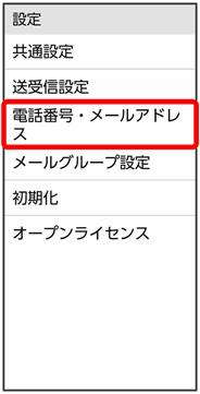 電話番号・メールアドレス画面が表示されます。