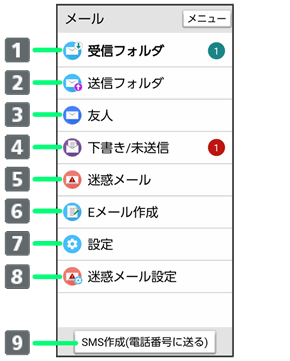 メールメニュー画面の見かた