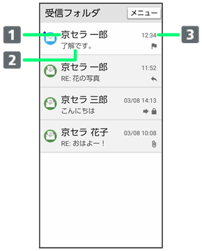 メール一覧画面の見かた