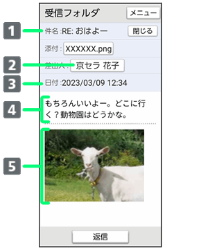 • ↓受信メール詳細画面で
