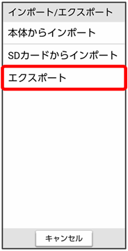 • SDカードを取り付けていないときは、本体メモリにエクスポートされます。