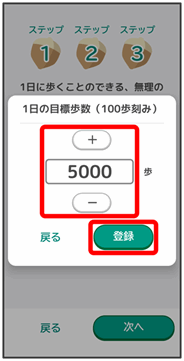 | 性別や生年月日、体重、1日の目標歩数を設定します。 |