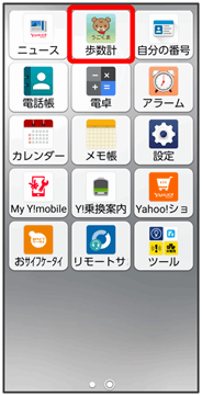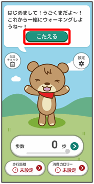 - スタート画面で歩数を表示をタップするとうごくまが起動しますので、画面の指示に従って設定してください。