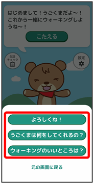 「うごくま」とのやりとりを楽しみながらウォーキングを習慣づけられます。