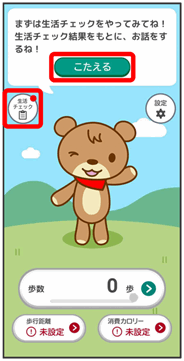 「こたえる」をタップすると会話できます。