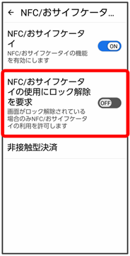 おサイフケータイ®の利用時にセキュリティの解除を要求するよう設定されます。