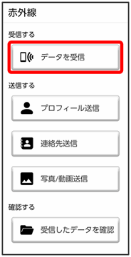 本機と送信側の機器の赤外線ポートを合わせる