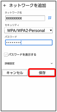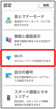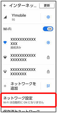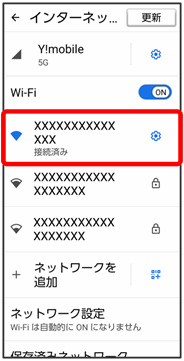 接続状況、電波強度、周波数、セキュリティなどが表示されます。