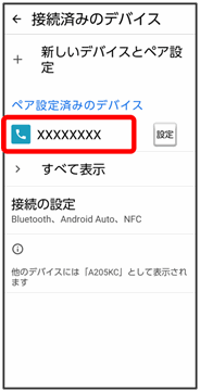 「ペア設定済みのデバイス」欄に、ペア設定済みの機器が表示されます。