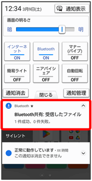 相手からデータの受信要求があると、ステータスバーに