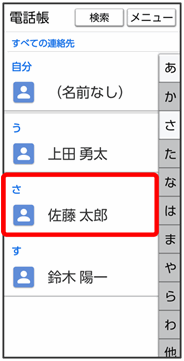 電話帳画面が表示されます。