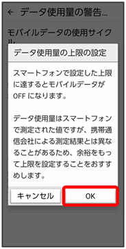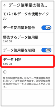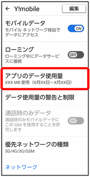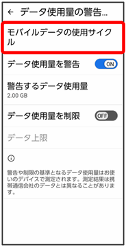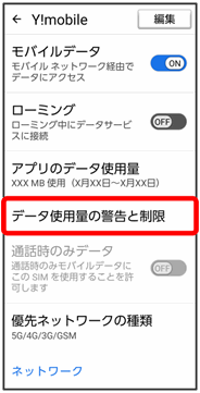 モバイルデータ通信の使用量を確認したり、使用を制限することができます。