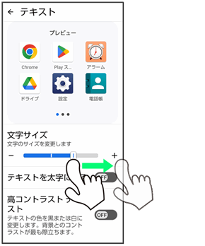 | テキスト | 画面に表示される文字の大きさや太さ、コントラストを設定します。 | |