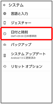 言語と入力や日付と時刻、バックアップ、リセットなどシステムに関しての確認や設定ができます。