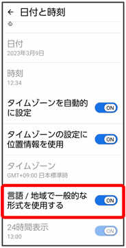 ユーザーの言語/地域の標準に従って24時間表示/12時間表示が自動設定されます。