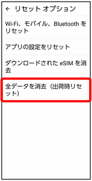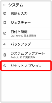 | リセット オプション | ネットワーク設定のリセットやアプリの設定のリセット、初期状態にリセットができます。 |