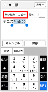 文字入力画面で入力済みの文字や、ウェブサイトの文字をダブルタップ/ロングタッチすると、文字列がハイライト表示されて編集メニューが表示されます。表示される編集メニューの項目は、アプリによって異なります。