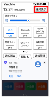 - 通知の表示部を上にフリック/スワイプしても通知を表示できます。