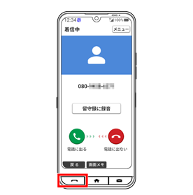 (電話ボタン)が点滅し、着信中画面が表示されます。 - 着信中画面で