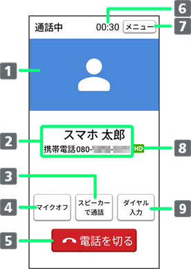 通話中は、アイコンをタップすることにより、次の機能が利用できます。