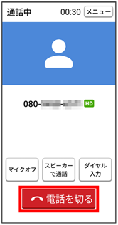 - 通話中に録音を終了をタップすると、録音を停止します。