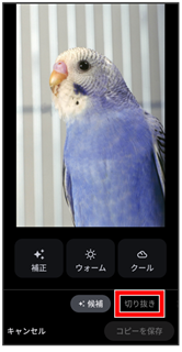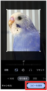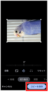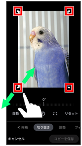 - 切り出す枠をピンチイン/ピンチアウト/ドラッグして、サイズ/位置を調節