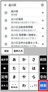 - 住所や都市、施設名などを入力