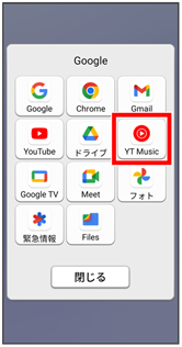あらかじめ、Google アカウントでログインし、YT Music画面で右上のアカウントアイコンをタップ