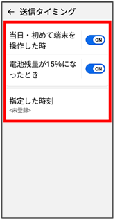 - 各項目をタップして送信するタイミングを設定