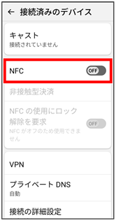 - NFC の使用にロック解除を要求をタップするたびにON(