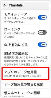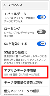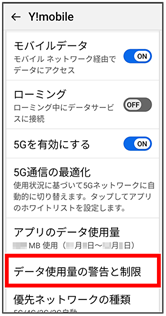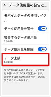 モバイルデータ通信の使用量を確認したり、使用を制限することができます。