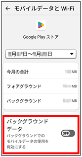 | バックグラウンドデータの通信 | バックグラウンドデータの通信を制限します。詳しくは、「バックグラウンドのモバイルデータ通信を制限する」を参照してください。 | |