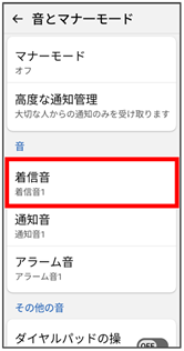 | ダイヤルパッドの操作音 | ダイヤルキーのタップ時に音を鳴らすかどうかを設定します。 | |